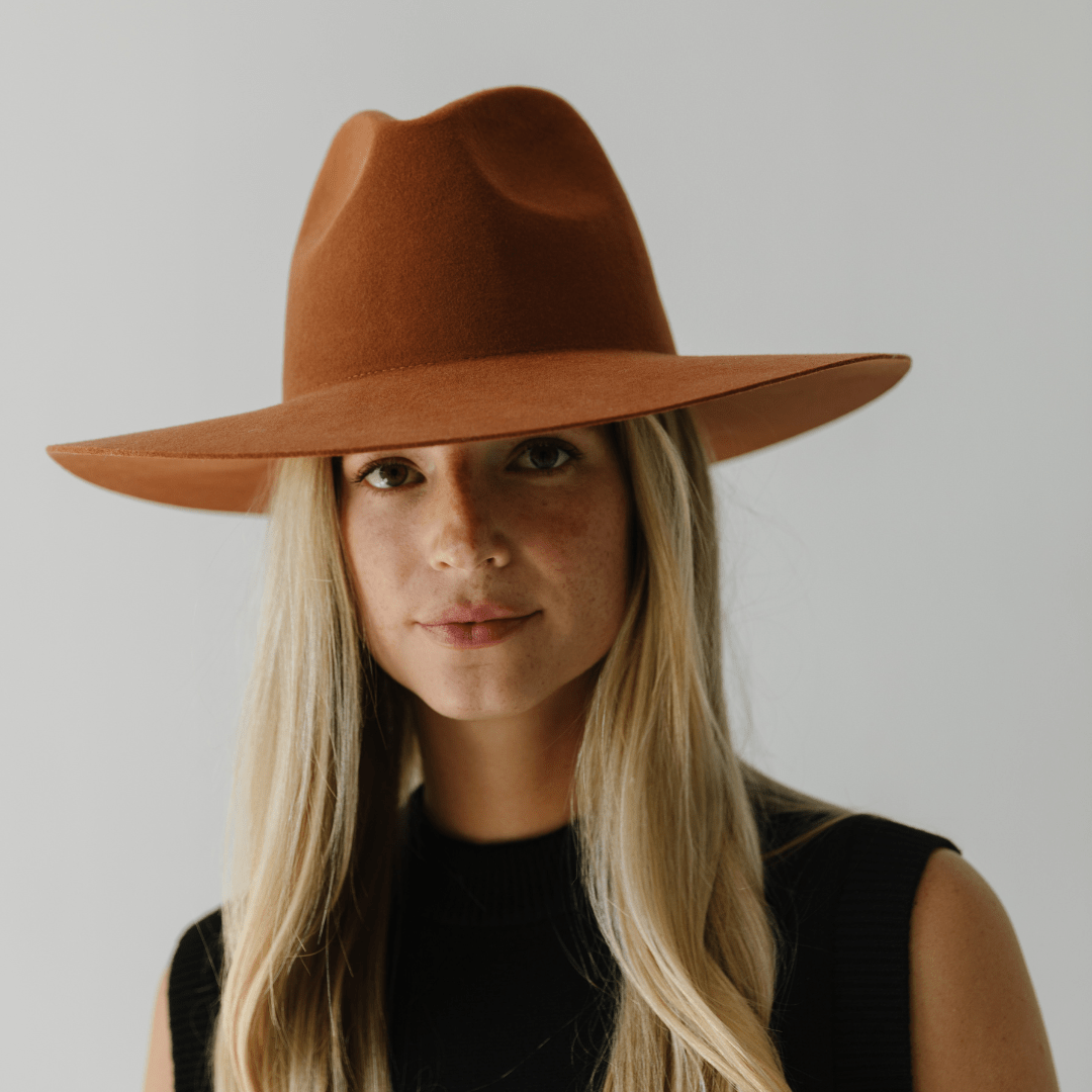 Better than a brilliant neutral? Nothing. Emma is a classic fedora shape with a stiff a-line brim. Designed to wear on its own or styled with accessories to add texture + color. Style - Stiff Wide Brim Fedora Material - 100% Australian Wool Dimensions - Crown 10 cm + Brim 10 cm The Emma looks great with our removable leather bands! Bands are sold separately, shop our removable leather bands here.
