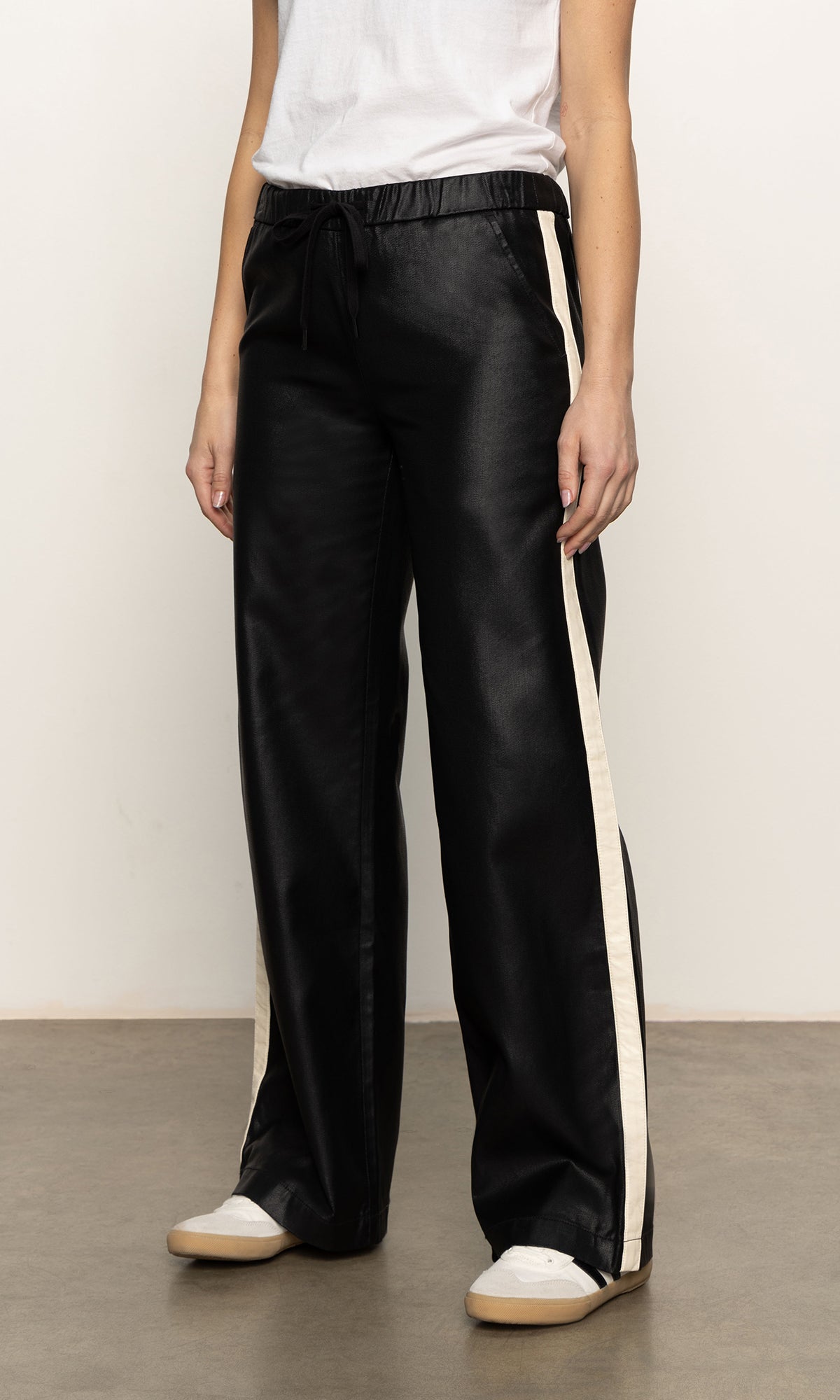 These coated twill track pants offer a relaxed fit with a straight leg design, providing comfort without compromising style. Featuring a standard rise and a non-stretch fabric, they ensure a structured look while the elastic, pull-on waistband adds ease and flexibility. A contrast side stripe enhances their sporty appeal, while front trouser pockets bring practical convenience. Perfect for casual wear, these pants combine comfort and modern design effortlessly.