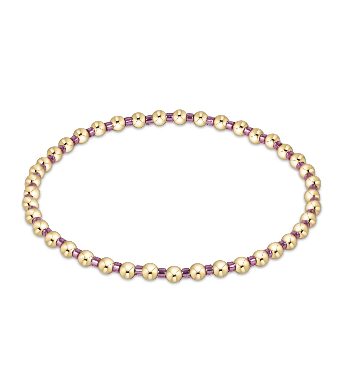 Embrace the cozy hues of fall/winter with the enewton Hope Grateful bracelet in pink metallic. Crafted from a mix of 2mm colorful seed beads and gleaming 14k gold-filled beads, this 6.25" bracelet combines delicate beauty with durable design. Hand-beaded on high-performance elastic, it offers a comfortable stretch for easy wear and removal. Designed for worry-free wear, it stands up to sleep, showers, and sweat without losing its charm. Perfect for stacking, this bracelet effortlessly elevates any look with a touch of color and grace.
