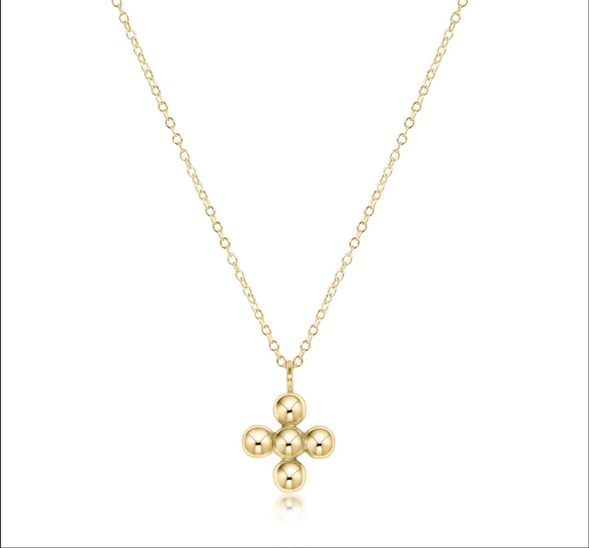 The Enewton 16" gold classic beaded cross necklace is the perfect combination of style and durability. Featuring a 14kt gold-filled chain and a beaded signature cross charm, this necklace is worry-free wear - meaning you can keep it on while sleeping, showering, and sweating. It also layers beautifully with other necklaces for a versatile and elegant look. Elevate your style with our new go-to necklace.