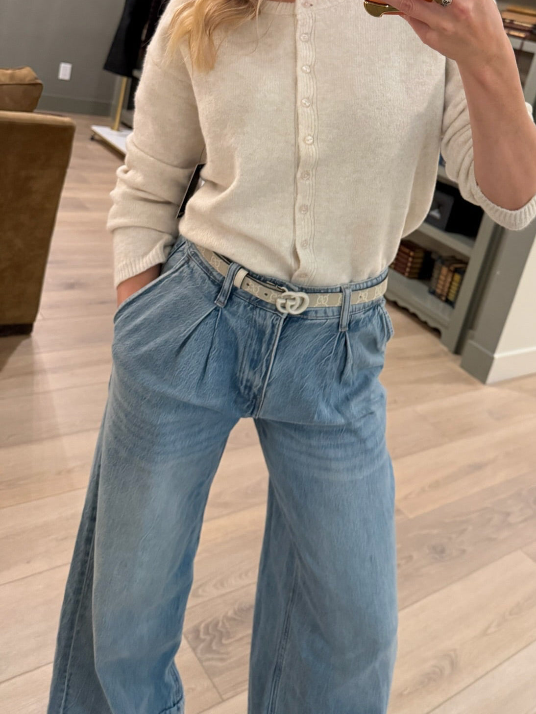 These Easy Days wide leg jeans feature a light wash and a super wide fit for comfortable all-day wear. Designed with a neat cuff detail and full-length cut, they offer a flattering silhouette that moves with you. Perfect for effortless style and ease, these jeans bring both comfort and versatility to your wardrobe.
