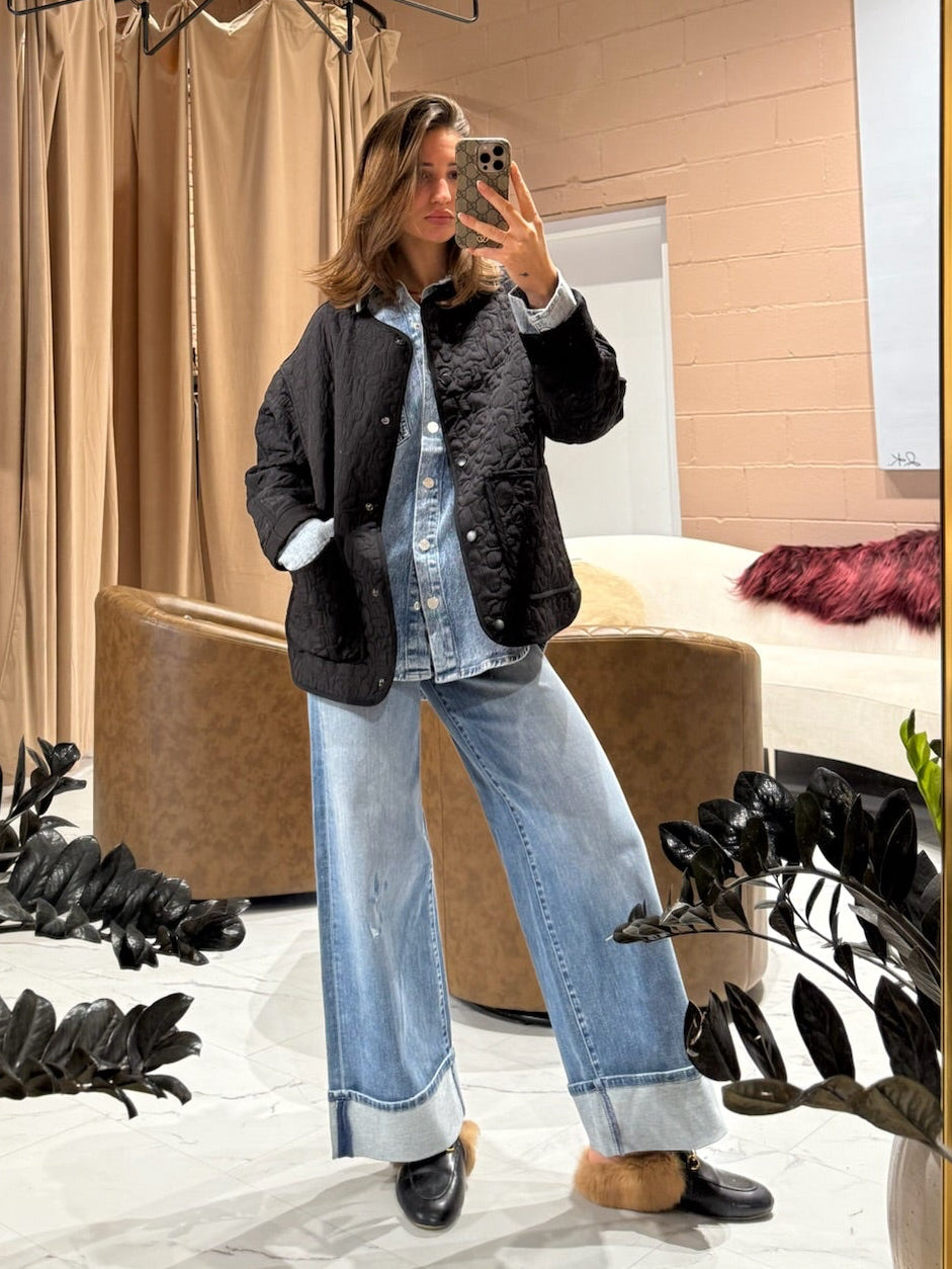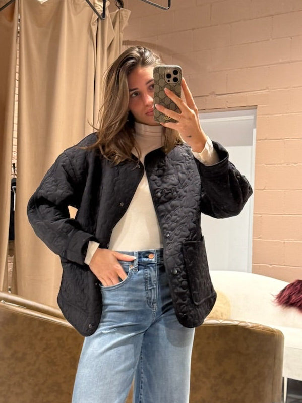 The Transit quilted liner delivers timeless warmth without fuss. This classic black jacket features practical press studs for easy layering and a collarless design that pairs seamlessly with any outfit. Cut to sit just below the hip, it offers comfortable coverage while maintaining a sleek silhouette. Perfect for transitional weather or as a versatile mid-layer, this quilted piece brings effortless style to your everyday wardrobe.