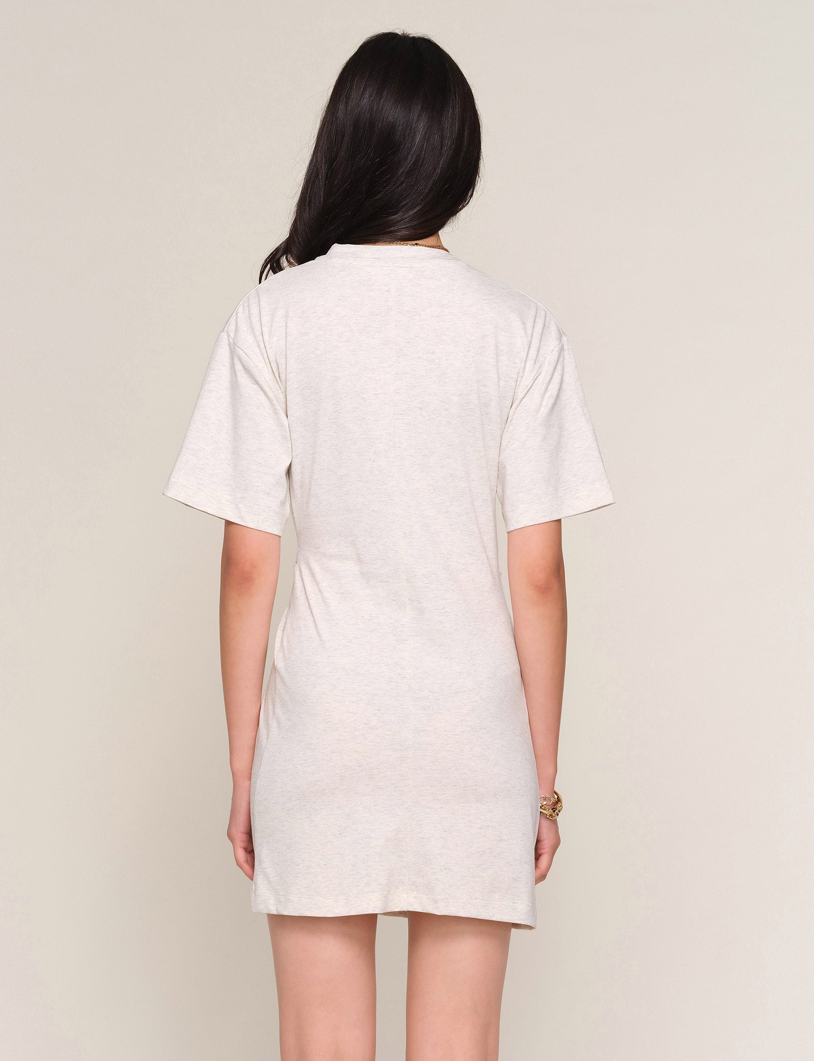 Effortlessly chic and versatile, the Rocha Dress pairs soft heather grey with a flattering twist-front detail that adds dimension to your everyday look. This t-shirt dress features a relaxed round neckline and elbow-length sleeves, striking the perfect balance between comfort and polish. Ideal for layering or wearing solo, it's the elevated casual piece that works from coffee runs to weekend outings.