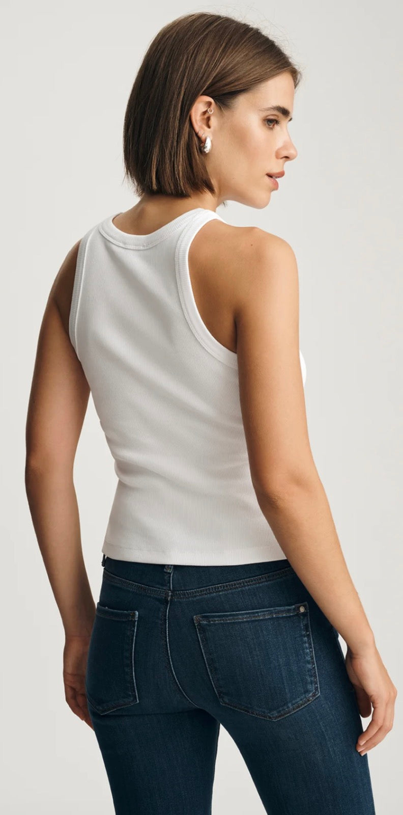 The Stella ribbed tank top is a wardrobe staple designed for everyday versatility. Crafted from a soft cotton-elastane blend, this essential piece features a classic scoop neck and a figure-hugging ribbed silhouette that flatters any frame. The high neckline offers modest coverage while the fitted cut creates a sleek, polished look—perfect layered under jackets or worn solo.